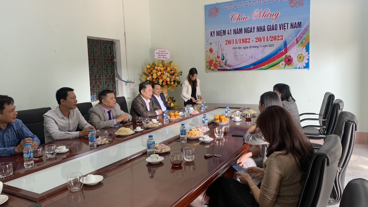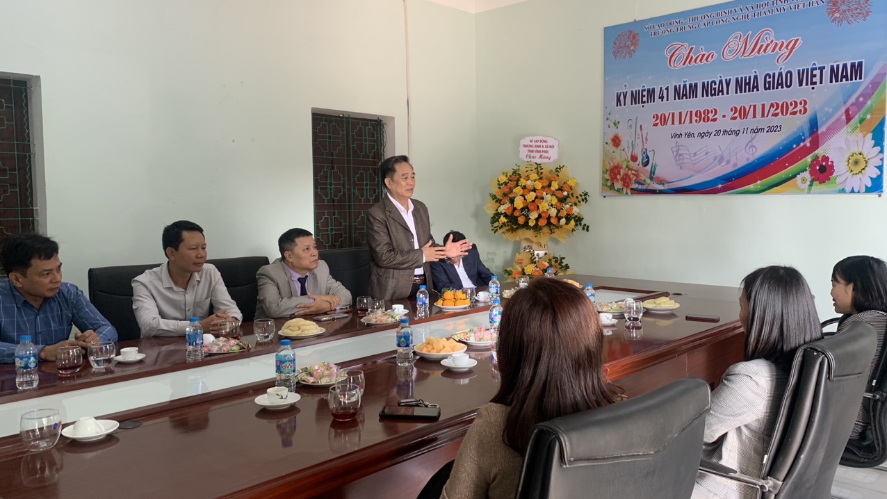 Hôm nay nhân ngày kỷ niệm 41 năm ngày Nhà giáo Việt Nam (20/11/1982 - 20/11/2023) trường Trung cấp Thẩm Mỹ Việt Hàn vinh dự được đón tiếp Sở lao động thương binh và xã hội tỉnh Vĩnh Phúc sang tặng hoa chúc mừng toàn thể Cán bộ giáo viên trong trường !
